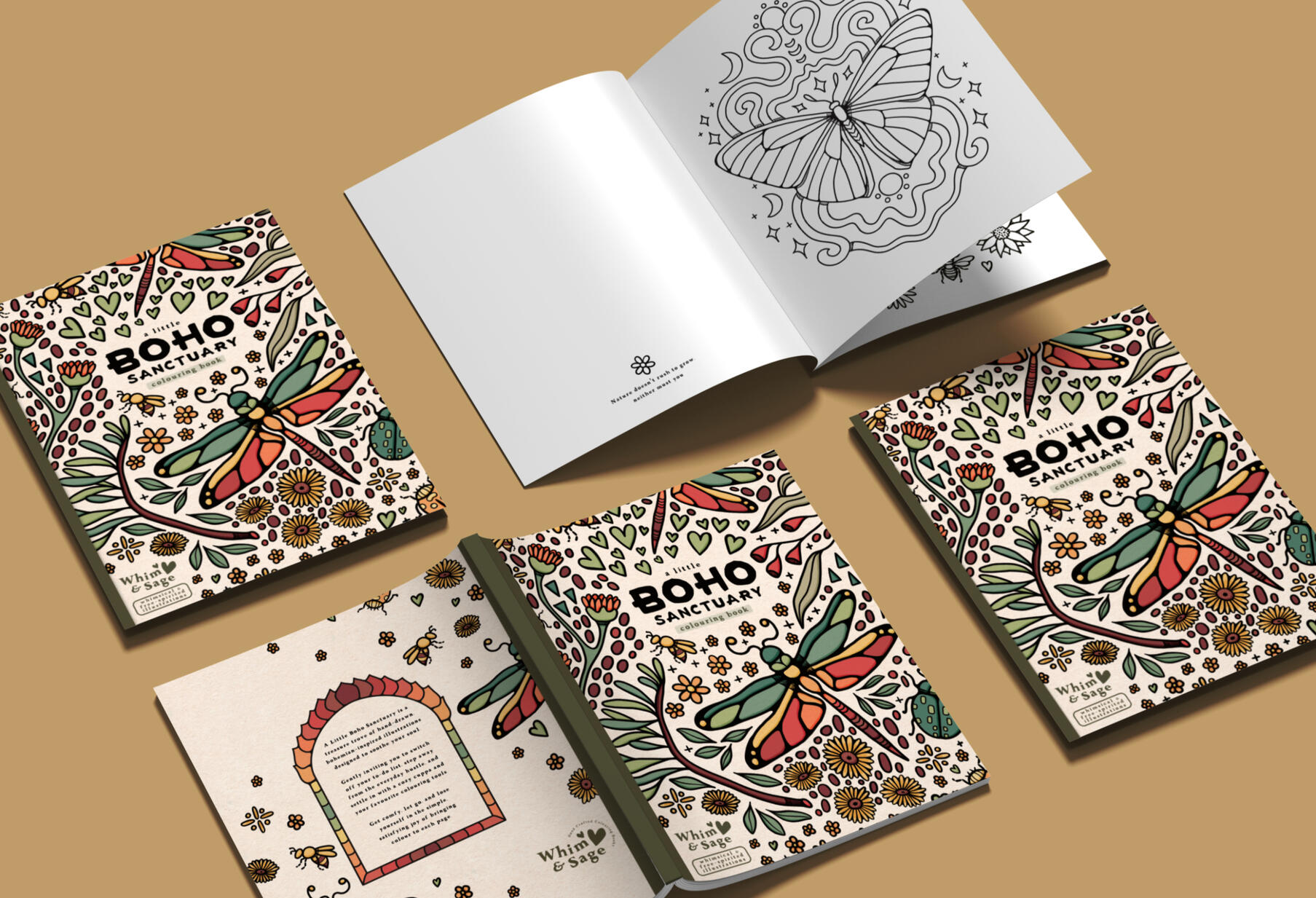 Take your first step into the world of Whim & Sage with A Little Boho Sanctuary~ a soulful colouring experience designed to bring you back to yourself. Inside, you’ll find a treasure trove of hand-drawn, bohemian-inspired illustrations filled with nature’s quiet magic, dreamy florals, moonlit moments, and sacred spaces. This book is your invitation to pause, breathe, and reconnect with the simple joy of colouring. Let each page be a gentle reminder that beauty lives in stillness, and sanctuary begins within.