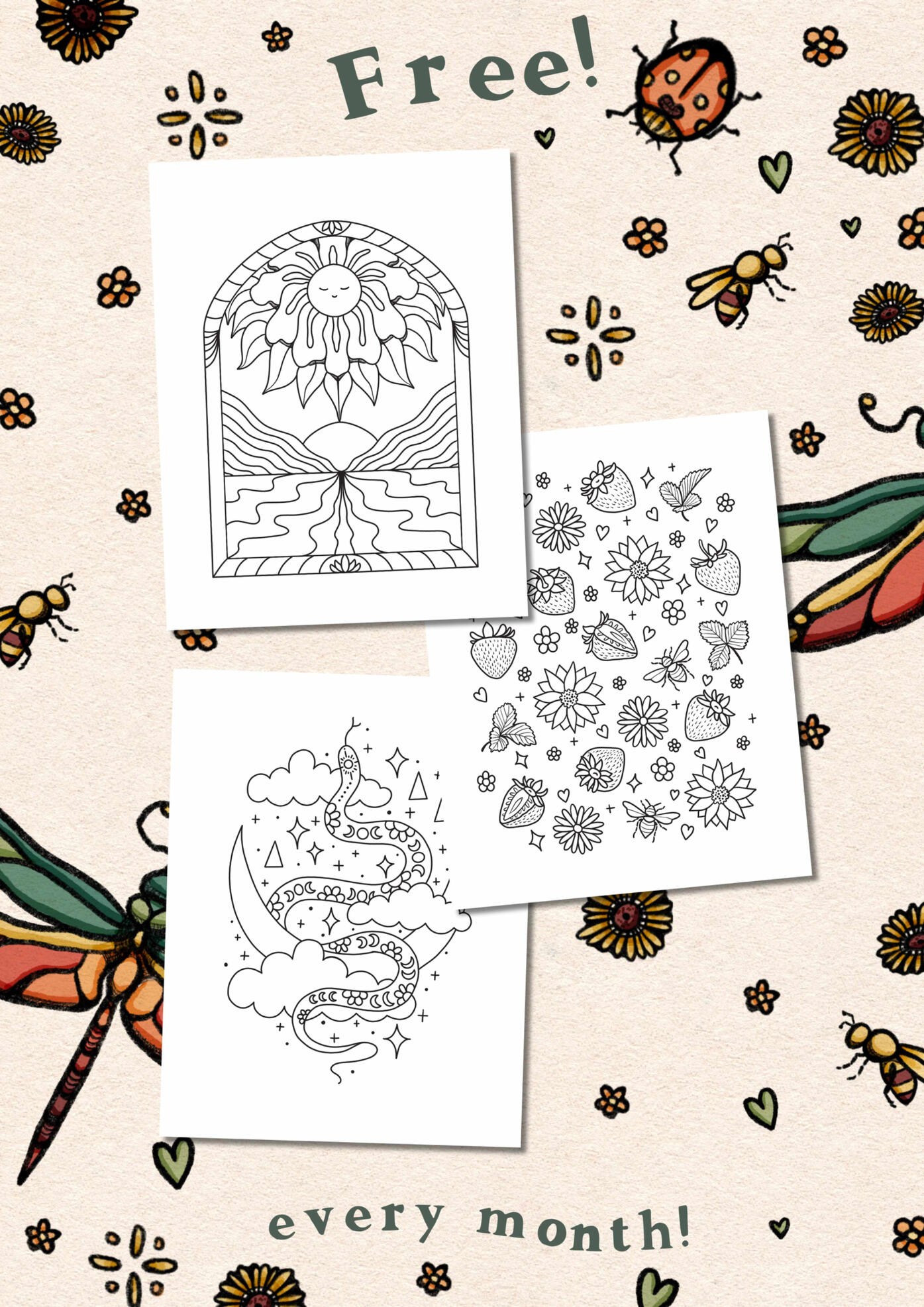 Calm + creativity, straight to your inbox ~ instant download.New hand-drawn pages monthly!Join the growing community of kindred colouring souls 💚