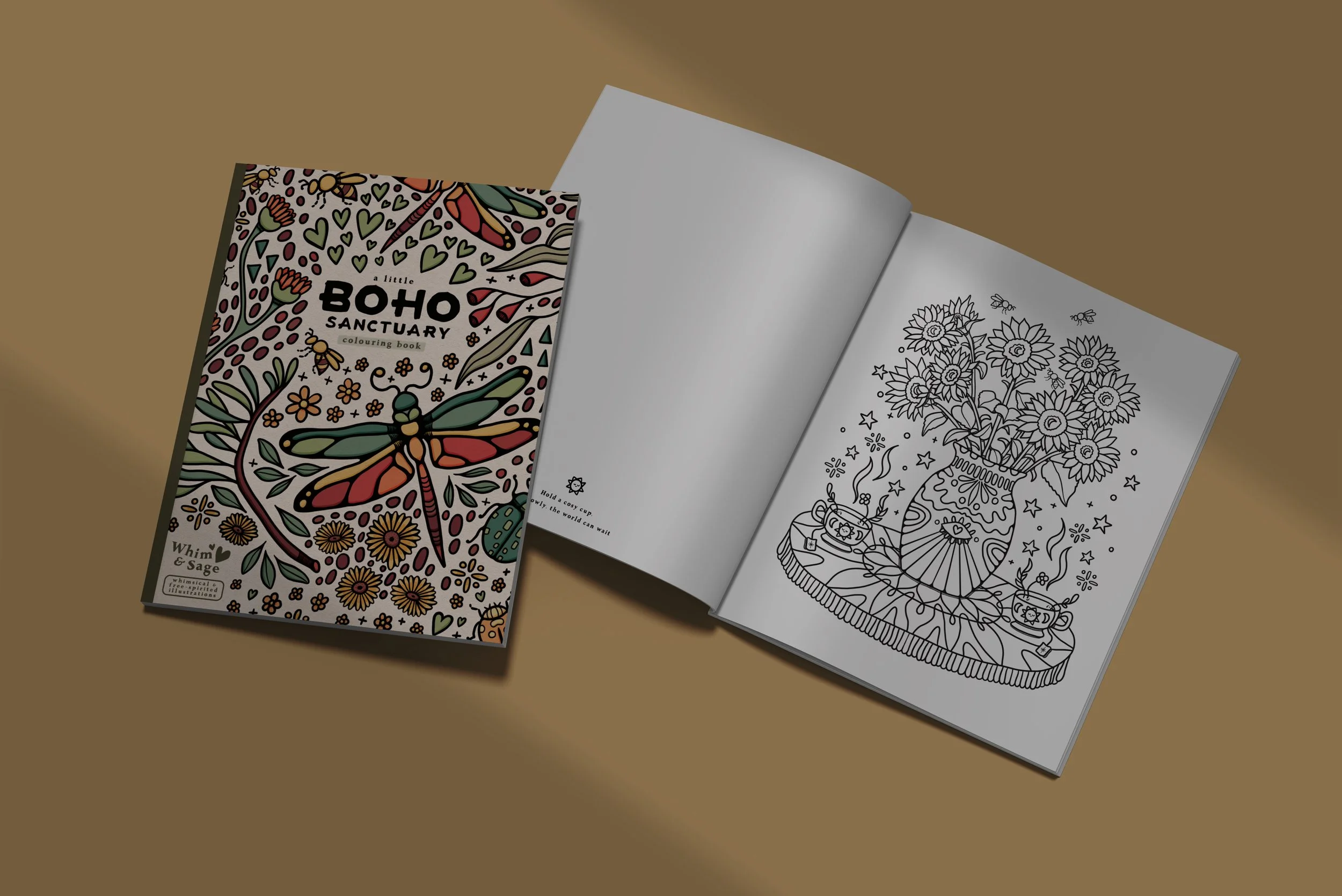 Take your first step into the world of Whim & Sage with A Little Boho Sanctuary~ a soulful colouring experience designed to bring you back to yourself. Inside, you’ll find a treasure trove of hand-drawn, bohemian-inspired illustrations filled with nature’s quiet magic, dreamy florals, moonlit moments, and sacred spaces. This book is your invitation to pause, breathe, and reconnect with the simple joy of colouring. Let each page be a gentle reminder that beauty lives in stillness, and sanctuary begins within.